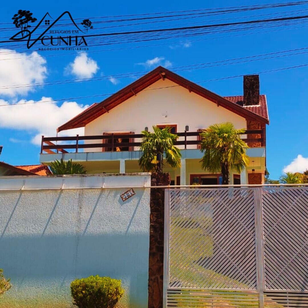Maravilhoso sobrado no bairro Vila Rica, melhor bairro de Cunha, com 395 m2 de área construída e 8000 m2 de terreno, com 4 quartos sendo 4 suítes e 6 banheiros, cozinha planejada, sala 03 ambientes com lareira, lavabo, área gourmet com forno de pizza e churrasqueira, varandas, piscina, área de serviços e dependência de empregados. Entregue toda mobiliada. Garagem coberta para 03 carros. Jardins impecáveis, gramado. Vista de tirar o fôlego.
